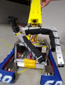 With this being the case, though the arm was hefty and bulky because it was made from leftover materials, we made the best of it and very much appreciated the donation, as we didn’t have the resources to create the part ourselves. Inside the arm, we created a linear actuator utilizing a lead screw. This allowed us to gain the required reach to score on all three levels of the scoring element.